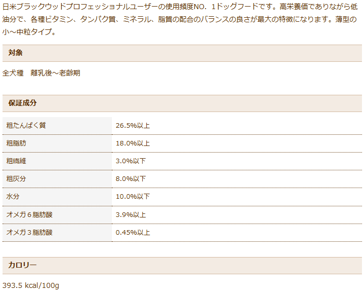 ◆保証成分:粗たんぱく質 26.5%以上、粗脂肪 18.0%以上、粗繊維 3.0%未満、水分 10.0%未満、オメガ6(リノール酸) 3.9%以、オメガ3(リノレン酸) 0.45%以上