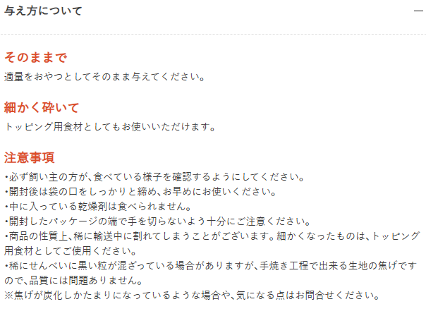 そのままで 適量をおやつとしてそのまま与えてください。