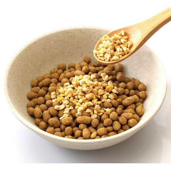 栄養豊富で整腸作用の高い納豆は、ワンコの身体にとても良い食品。実はワンコの大好物でもあります。ドットわんでは"生きた納豆菌"を届けたいという想いから、ワンコ用に熟成度合を高めた良質な納豆をフリーズドライ加工しました。サラリとした手触りで与えやすい、ドットわん不動のロングセラー商品です。