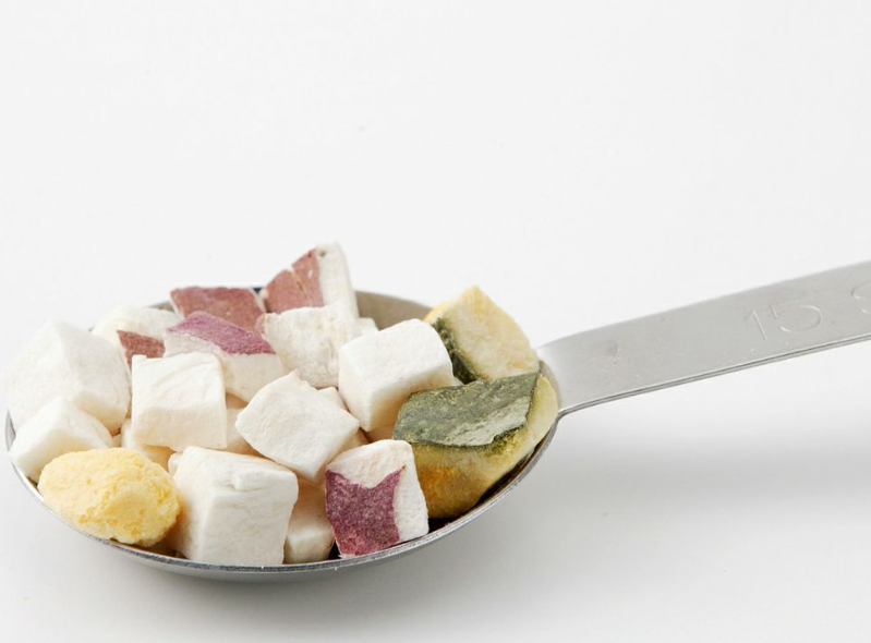 ◆給餌の目安:フリーズドライカボチャ・サツマイモの一粒は1.2〜2.6キロカロリーと低カロリーです。
