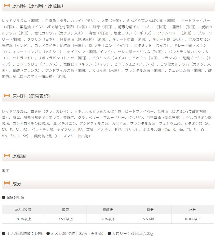 ◇成分:たんぱく質18.0%以上 脂質7.5%以上