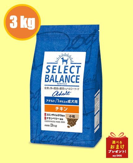 セレクトバランス ハイクォリティーフード アダルトチキンは、生後1才以上の成犬に適正な体重と健康を維持するのに必要な栄養をバランスよく配合しました。