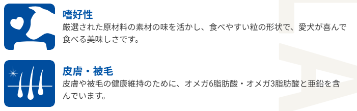 | 高品質の原材料をふんだんに使用し ライフステージ別で栄養バランスに優れています |