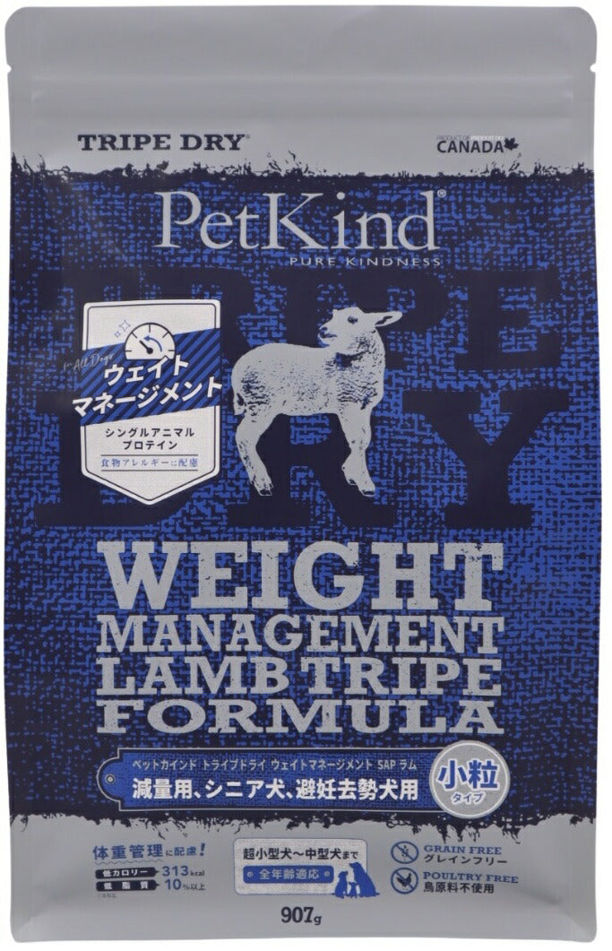 ペットカインド トライプドライ ウェイトマネージメント SAP ラムトライプ 小粒 907g