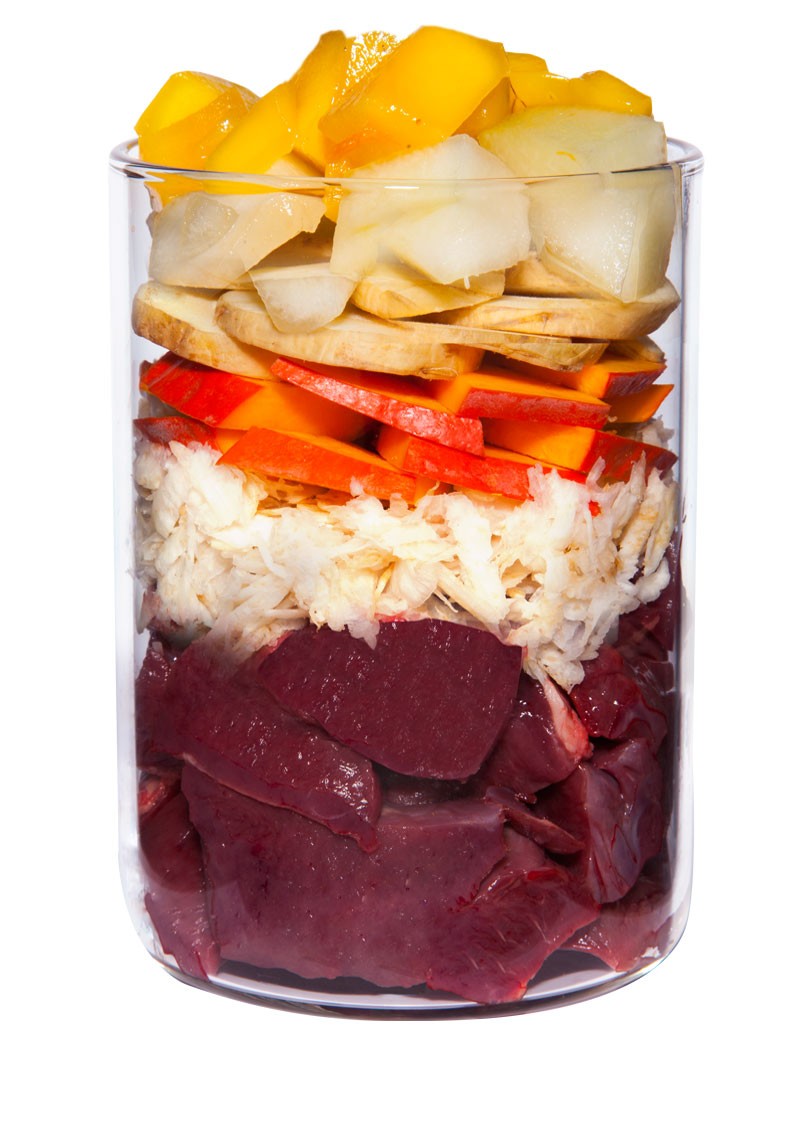 ・穀物や乳製品の食物アレルギーや消化吸収に配慮したメニューです。仔牛肉・野菜・果物など愛犬の健康維持に必要なバランスの取れた手作り食の理想形を便利な1缶にしました。