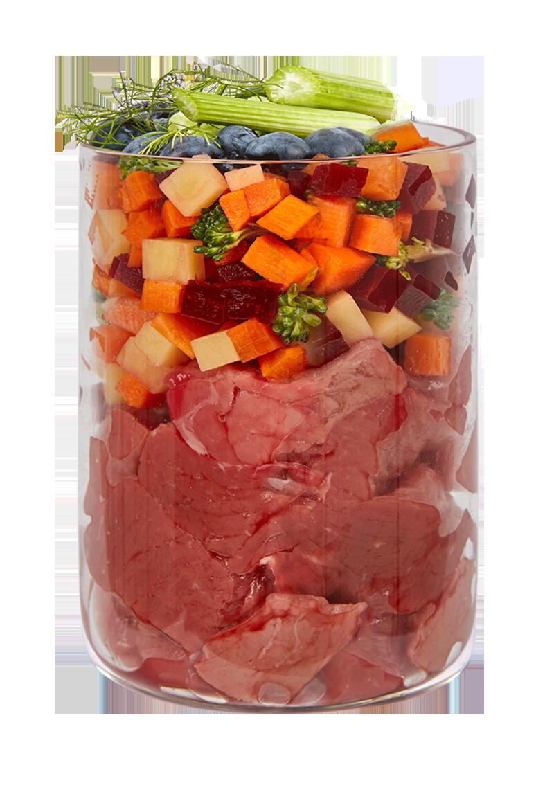 ・ヒューマンクオリティーの食材を使った愛犬のごちそう、牛肉の伝統的なラグー (煮込料理)をご用意いたしました。