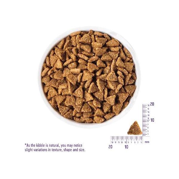 小粒サイズで、カリカリした粒を噛むことで、歯垢の蓄積を抑えることを助け、高齢犬の歯の健康維持をサポートします。
