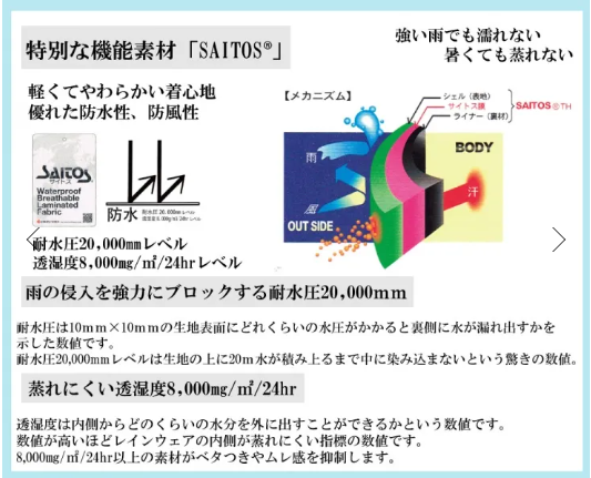防水性・透湿性があり耐水圧の最上級レベル!