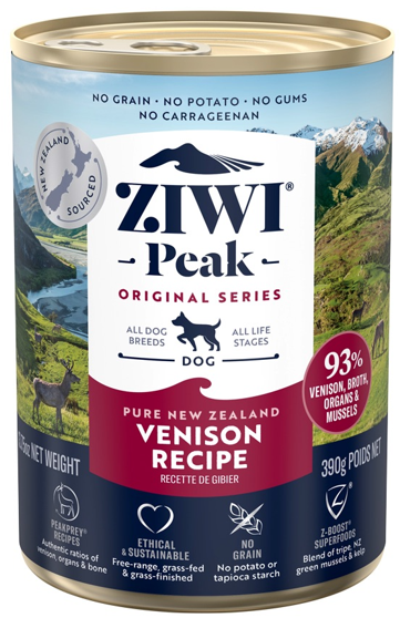 | 犬の自然界での食事は肉や内臓、骨が豊富で、水分をたっぷり含んでいます。 ですからZIWIピークの全てのウェットドッグフードは、ニュージーランドで倫理的かつ持続可能な方法で調達された肉、内臓、魚介類、骨を最大97%配合しています。 高GIの原材料や人工的なつなぎを使用せずに作られた、多種多様のレシピがあるZIWIピークの缶入りドッグフードは、愛犬の楽しい冒険の活力となります。 |