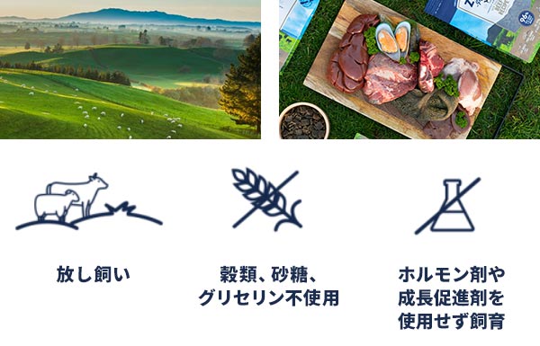 ●ゆっくりとエアドライ 何世紀にもわたり行われてきた肉の保存方法に現代的な手法を加えた私たちのZ-ツインテック™エアドライ技術で、生の原材料の風味や栄養を閉じ込め、生の食事にヒントを得たすぐに食べられるフードを作り上げています。 ●環境に配慮&持続可能 私たちの放し飼いで牧草を食べて育った肉や地元産の鶏は、ニュージーランドの5つの自由原則の下、で道徳的に配慮した方法で飼育されています。また、私たちの持続可能な魚介類は世界でもトップクラスの漁場で漁獲されています。 ●ピークプレイ™レシピ 肉、内臓、魚介類を独自のピークプレイ™比率で配合し、栄養価を高めるためにスーパーフードを加えた、栄養を最大限に詰め込んだレシピ |