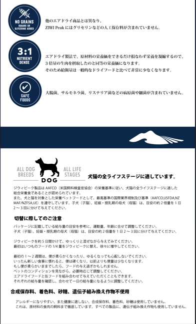 | 一度に大量のフードを高温で加熱して製造する従来のドッグフードとは異なり、私たちのフードは手作業で作られ、自社キッチンでゆっくり時間をかけてエアドライされています。 何世紀にもわたり行われてきた肉の保存方法に現代的な手法を加えた独自のZ-ツインテック™エアドライ技術により、人口保存料を使用せずに生の原材料の栄養を閉じ込めています。ZIWIピークのエアドライ・ドッグフードは生や新鮮な食事の良さとドライフードの安全性や利便性を兼ね備えたフードです。 妥協をせずに作られた、すぐに食べられる最高の栄養。さっとすくってあげるだけ。 |